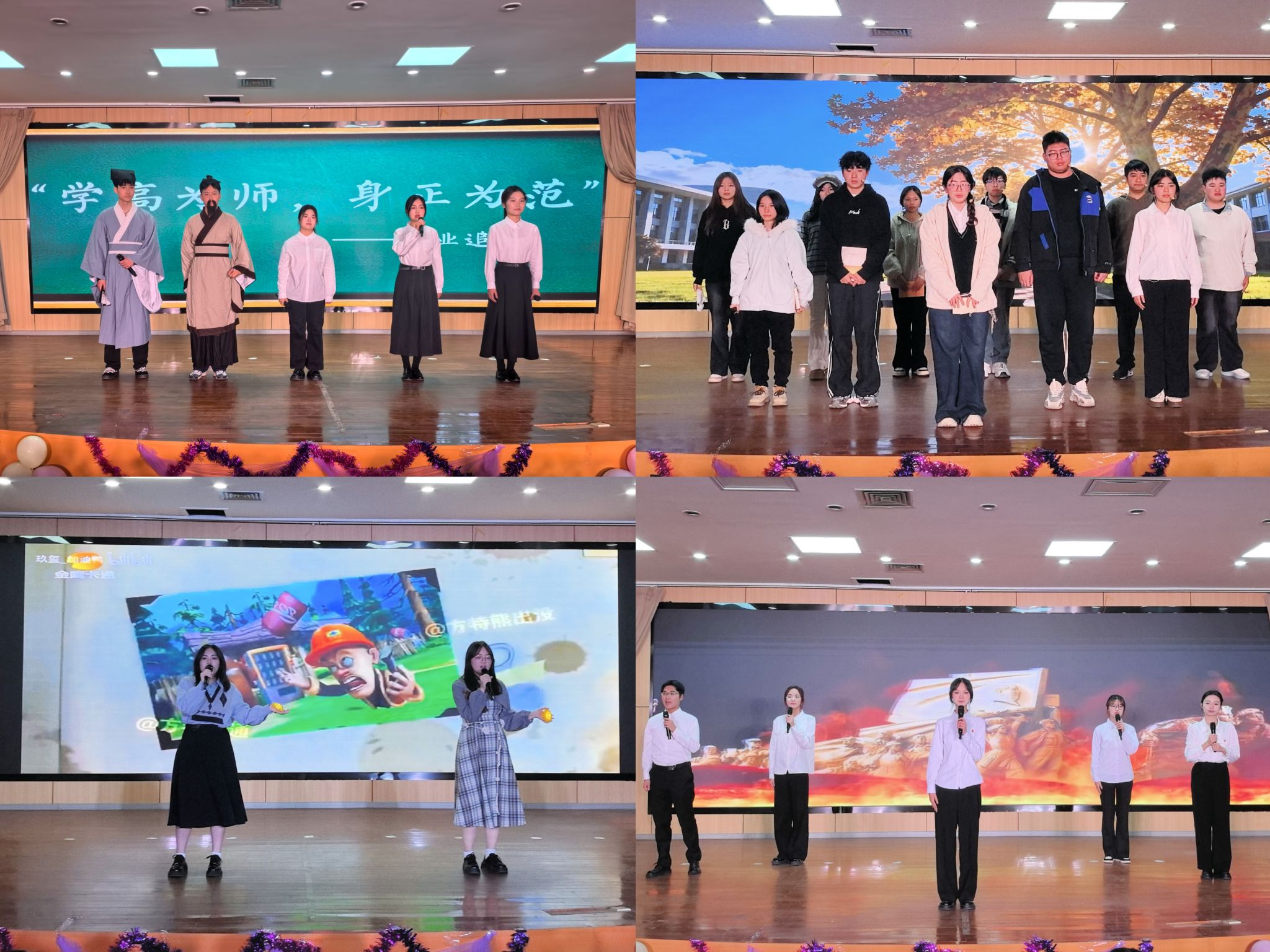 晚会在学院团学联部长的舞蹈串烧《青春跃动》中激情开场,瞬间点燃了全场的热情。紧接着,朗诵《跨越千年的师者对话》兼具唯美与磅礴,诵读者们用铿锵有力的声音,深刻诠释了中华文化的博大精深。舞蹈《Uptown Funk》活力四溢,舞者们用充满力量感的动作,展现出青春的蓬勃朝气。太极剑与二胡演绎的《青花瓷》,将国风美学与传统技艺创意融合,兼具视听之美。《青春歌曲串烧》覆盖了校园、励志、动画主题曲等风格,充满了青春回忆,唤醒了台下学子的青春记忆。情景剧《光环之下》聚焦评优展开,为新生敲响警钟。汉服社的舞蹈充满国风古韵,搭配《人间乐》的旋律,展现传统服饰与古典舞蹈的美感。歌曲《岁月里的花》以温柔声线传递出细腻情愫。朗诵《中国红》则以庄重饱满的语调,传递出家国情怀的感染力。《ONE SPARK》以跃动的节奏,让每一次旋转与定格都成为青春能量的爆发。最后,以大合唱《如愿》收尾,将“愿新生如愿成长”的祝福融入歌声,让温馨氛围弥漫现场,为晚会画上了圆满而温馨的句号。