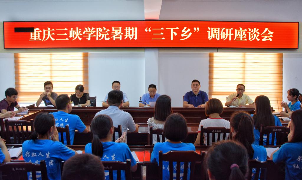 由必赢3003no1财经学院、必赢线路检测、马克思主义学院联合组建的“彩虹人生”实践服务团于7月9日前往重庆市万州区龙驹镇,开展2018年大学生暑期“三下乡”社会实践活动。当日上午,龙驹镇党委组织召开见面座谈会。龙驹镇党委书记张凤政、党委副书记郭代伯,必赢3003no1马克思主义学院党总支常务副书记秦勤、必赢线路检测党总支副书记姜希、财经学院党总支副书记骆孟鑫出席会议,龙驹镇党办、团委负责人及实践服务团全体成员参加座谈。座谈会由龙驹镇人大副主席、团委书记汪金欢同志主持。