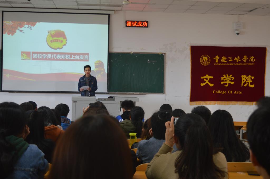 英才团校开班仪式在庄严的国歌声中拉开帷幕,首先由团委副书记熊贞贞致辞,她强调了青年马克思主义者培养工程的培训意义和塑造大学生良好形象的重要性,并要求学员们应该联系实际学以致用,严守纪律,锤炼作风,珍惜培训机会,认真学习。17级学生邓锐作为英才团校学员代表阐述了对共青团以及英才团校的认识,并且提出青年团员的责任与使命,表明英才团校的学习对团员们的意义。接着,团总支副书记秦玉红向全体学员宣读了团校学习方案和要求。