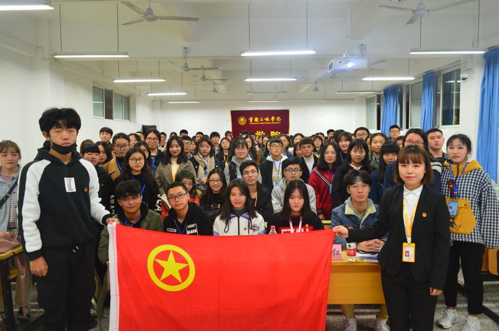 最后,英才团校各小组组长带领组员宣读了本学期学生团体联合会自律公约。团总支副书记秦玉红带领全体团学联成员宣誓,表明了团学联成员坚持全心全意为同学服务、助力团学、为构建美丽文院而奋斗的决心。