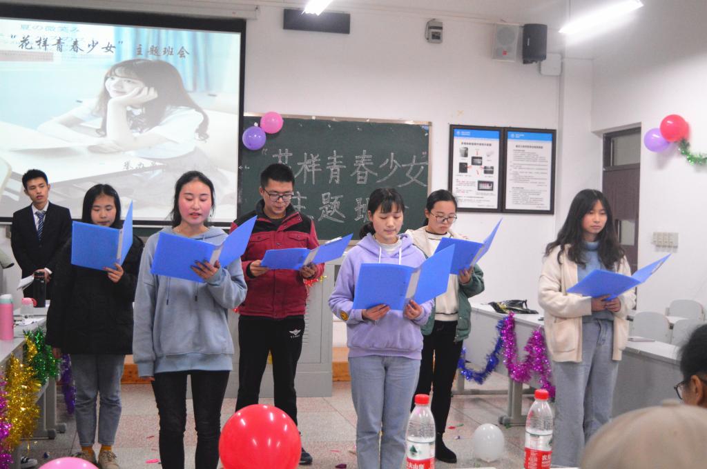 为提高女大学生的心理健康认知,增强自我保护意识,我院心理健康教育工作部兼学生权益维护部于3月24日19:00在2018级各班自习室主持召开了“花样青春少女”主题班会。