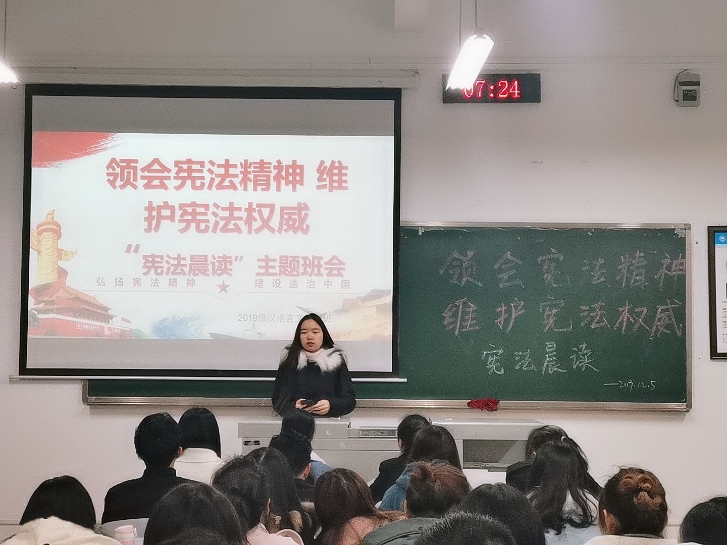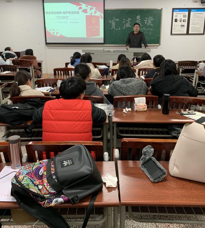 为了贯彻落实新时代法治精神,营造学宪法、懂宪法的良好社会风尚,进一步引导大学生树立法治观念,增强学生宪法意识,做遵纪守法的当代大学生。12月5日上午,必赢线路检测2019级辅导员阮碧波组织各班开展了“领会宪法精神,维护宪法权威”宪法晨读活动。
