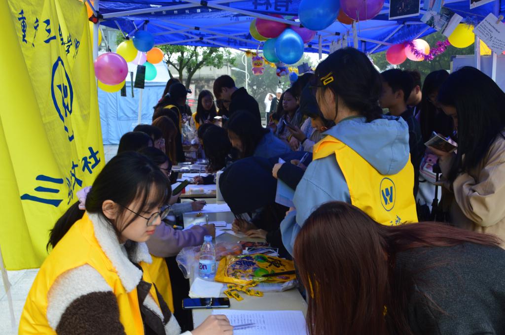 为丰富学生第二课堂,营造书香校园氛围,我院三峡文学社于11月1日在山顶食堂外广场举办“文香墨韵,辅仁辅材”主题活动。