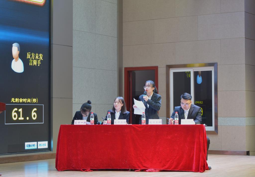 为丰富大学生课余生活,培养大学生的逻辑思维能力和语言表达能力,我校于11月6日晚在山顶食堂三楼多功能厅举办第十九届大学生文化艺术节辩论赛总决赛。我院辩论队作为反方参赛。