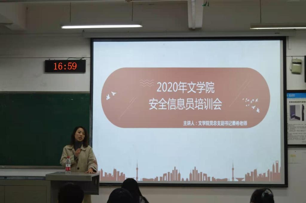 为进一步提高学生安全意识,营造健康稳定的校园环境,我院于11月21日下午5:00在明辨楼1教401召开安全信息员培训会,此次培训会由我院党总支副书记姜希主讲。