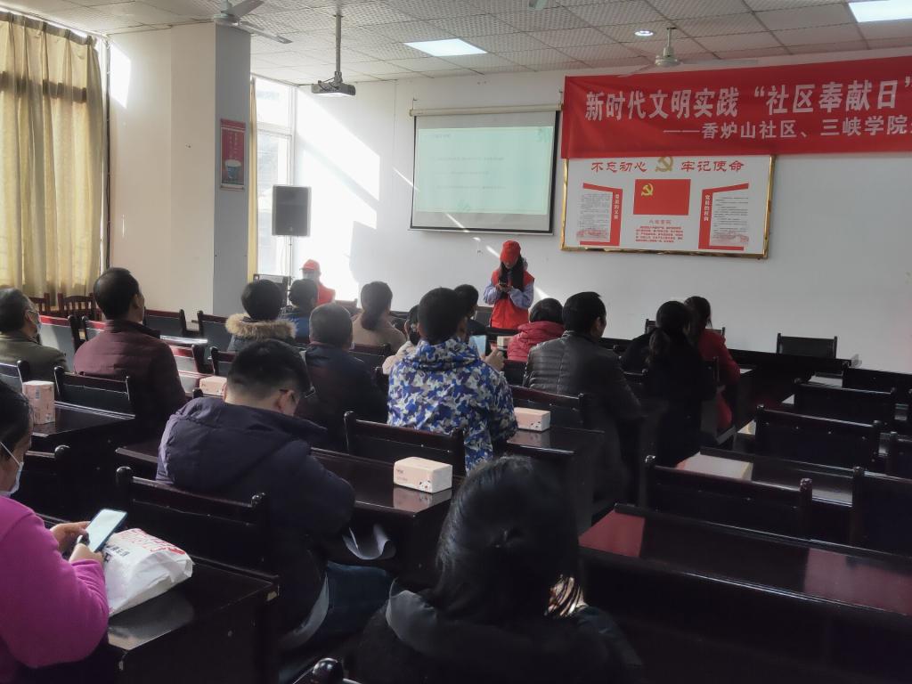 为增强我院大学生社会责任感,进一步推动志愿服务工作的开展,我院青年志愿者协会和大学生语言艺术爱好者协会于11月25日至30日分别在尖峰岭社区和香炉山社区开展新时代文明实践社区奉献日活动。