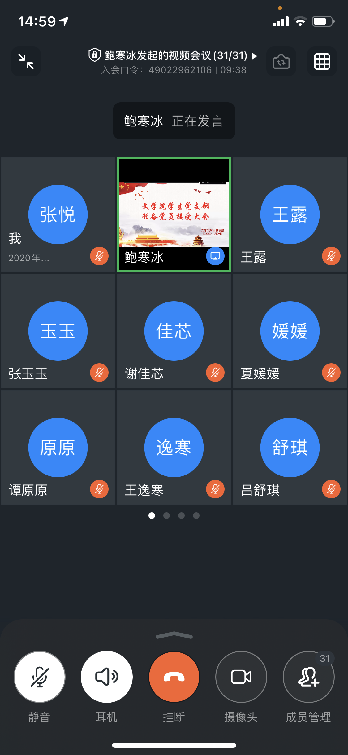 2020年12月2日下午,我院党总支学生党支部于线上召开预备党员接收大会。会议由鲍寒冰同志主持,我院学生第一党支部书记王陈超、学生第二党支部书记张悦、全体正式党员及本批发展对象参与本次会议。