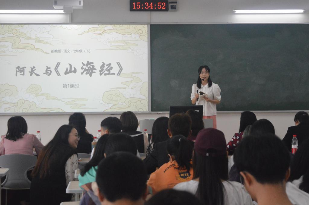 本次比赛的内容为即兴表演和模拟授课。来自两个年级的10名选手采用口述、幻灯片演示、板书以及师生互动等不同授课方式进行比赛,真情饱满地展现出新一代教师风采,也给在座的各位师范生做出良好示范,赢得了台下观众及评委的一致好评。