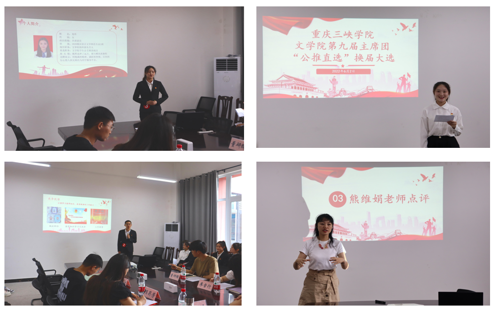 为进一步推动我院团学队伍建设,我院于6月2日在博学楼3栋418室举行团学联第九届主席团“公推直选”换届大会。我院学工办主任、团总支书记熊维娟、2020级辅导员张悦以及我院主席团成员出席本次大会。