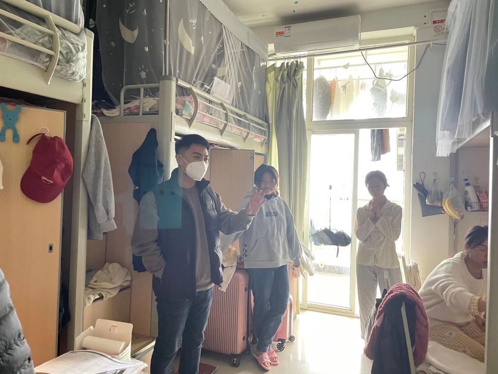 此次深入学生宿舍,是我院辅导员自闭环返校后第一次深入学生宿舍。后续我院将每天开展深入学生寝室工作,用真诚、真心来关心关爱每一位学生,使同学们疫情防控下少了份焦虑、多了份温暖,感受到了学校、学院满满的爱与关怀。