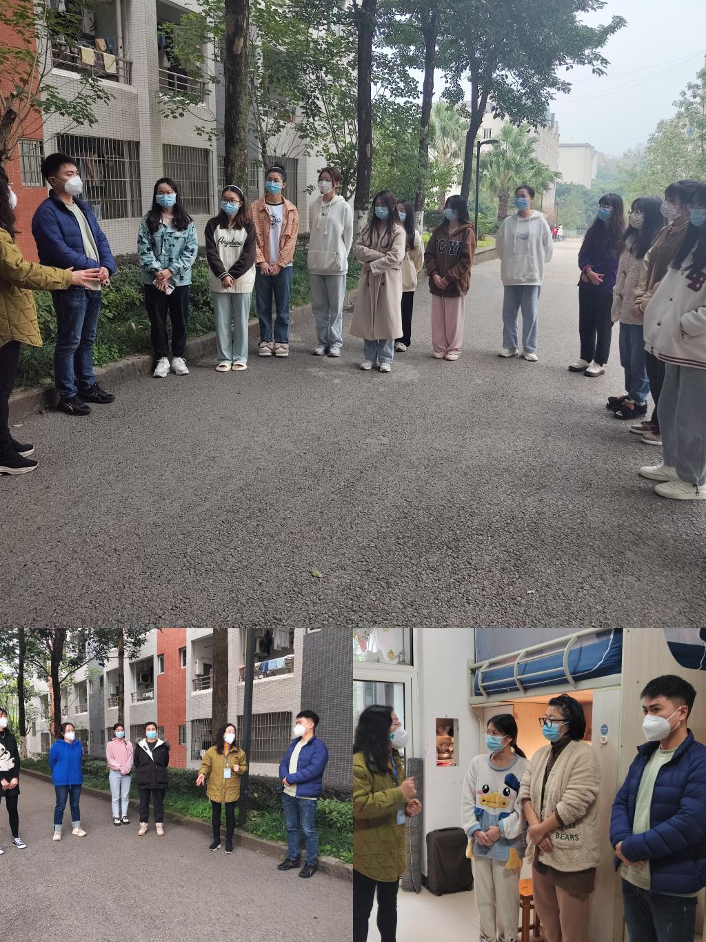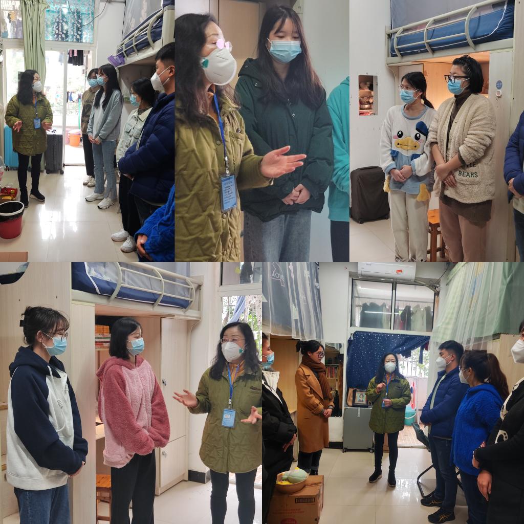 在宿舍走访过程中,唐晓萍书记首先提醒了楼长和层长们不仅要发挥带头作用,积极营造良好的宿舍学习和生活环境,还要切实走进同学们的生活,观察同学们的心理状况。其次,老师们熟悉了解同学们线上学习和生活的情况,并建议同学们要将运动与学习相结合,积极参加线上活动,实现德智体美劳的全面发展。最后,老师们还特别叮嘱同学们要严格遵守学校疫情防控要求,坚持不懈做好个人防护。同学们纷纷表示一定会谨记学校的防疫要求和管理规定,做好自我防护,并合理安排学习生活。