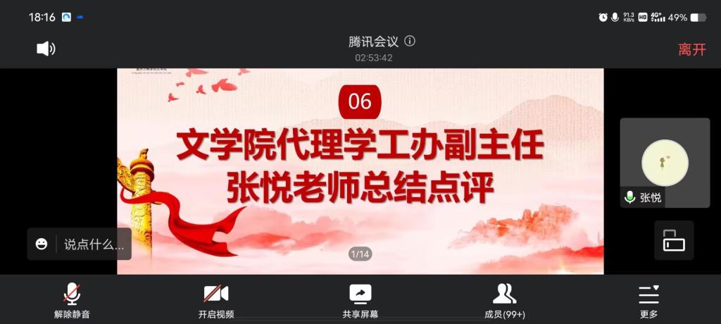 在本次述职会议中,首先由主席团成员分别从自身工作、部门简介、工作概况和未来展望四方面进行工作汇报与总结。随后,由秘书处、组织部、媒体融合部、浅草剧社等各部门负责人围绕本学期的工作内容、工作成就以及未来展望进行详细介绍,并针对部门存在的问题提出相应的改进方法和措施。最后,张悦老师对此次会议进行总结,充分肯定了各部门的工作态度,并建议各部门要深入进行自我剖析,树立目标定位,发挥优势、补短板,不断完善部门制度,发扬学院优良传统,希望各部门在新的一年里接续奋斗,勇攀高峰。