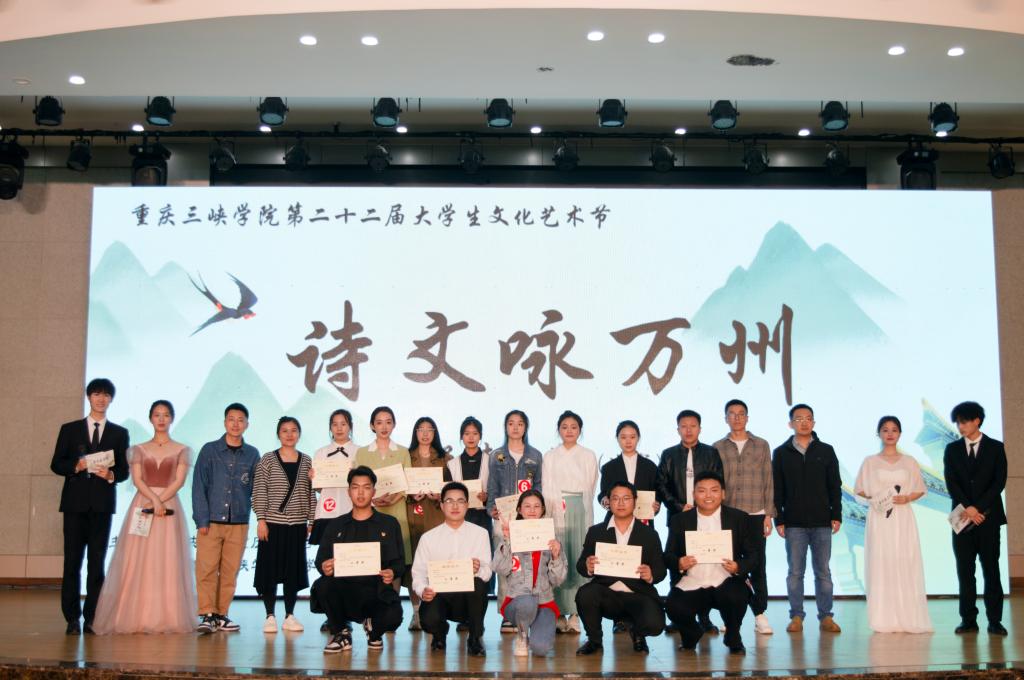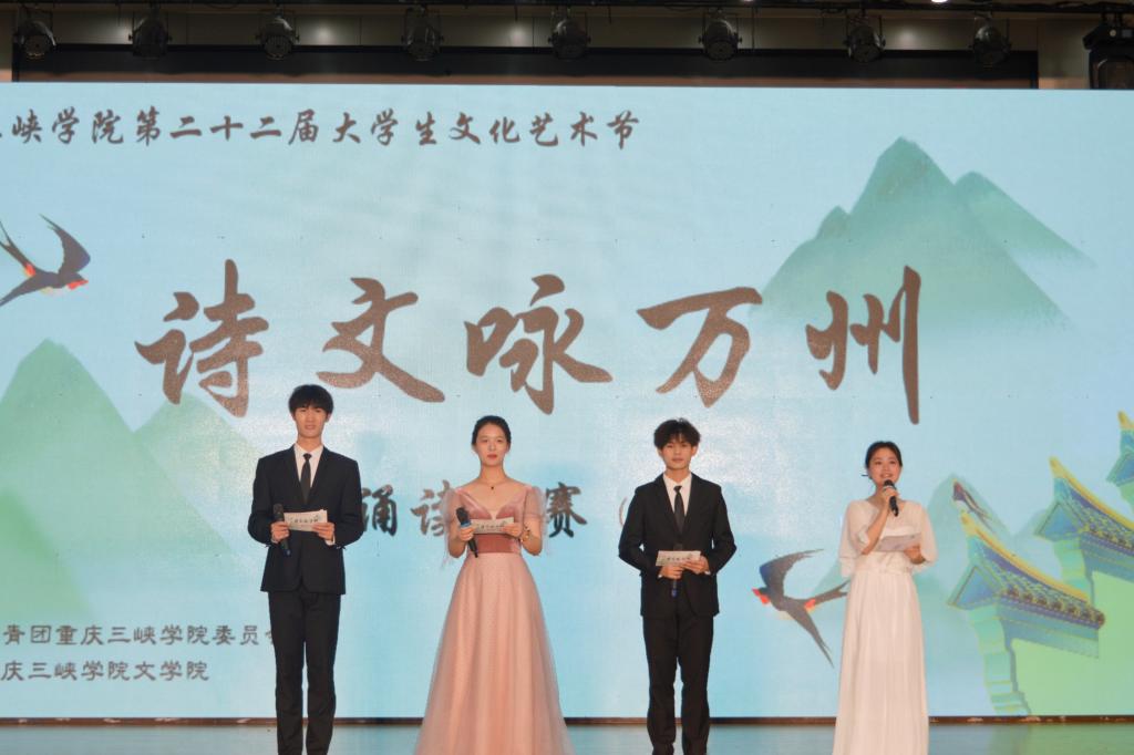 由校团委主办,必赢线路检测承办的学校第二十二届大学生文化艺术节“诗文咏万州”诵读大赛决赛于5月7日晚在山顶多功能厅举办。三峡融媒体中心主持人许延宏、党委办公室文秘科科长李建东、党委宣传部理论教育与文化建设科副科长王川萁、党委宣传部网络舆情科副科长丁飞、必赢线路检测学工办主任兼团总支书记张悦担任此次大赛评委。