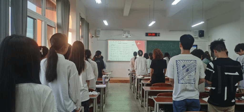 活动伊始,各班团支书组织同学们合唱团歌,顺利拉开本次活动的序幕。各班分别从讲解劳动精神,观看劳动楷模视频等开展活动。在优秀团员的详细讲解中,同学们深刻了解到劳动精神的内涵,强化了自身的劳动观念。通过放映视频,让同学们走进了劳动楷模的日常生活,亲历实际劳动过程,感受劳动的艰辛和快乐。各班团支书对活动进行总结,鼓励同学们在日常生活中积极劳动,发扬劳模精神,以劳动之光铸就青春理想。