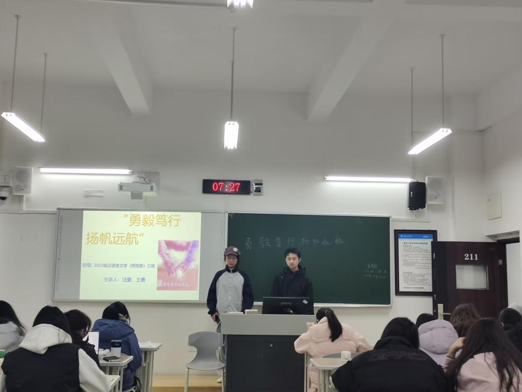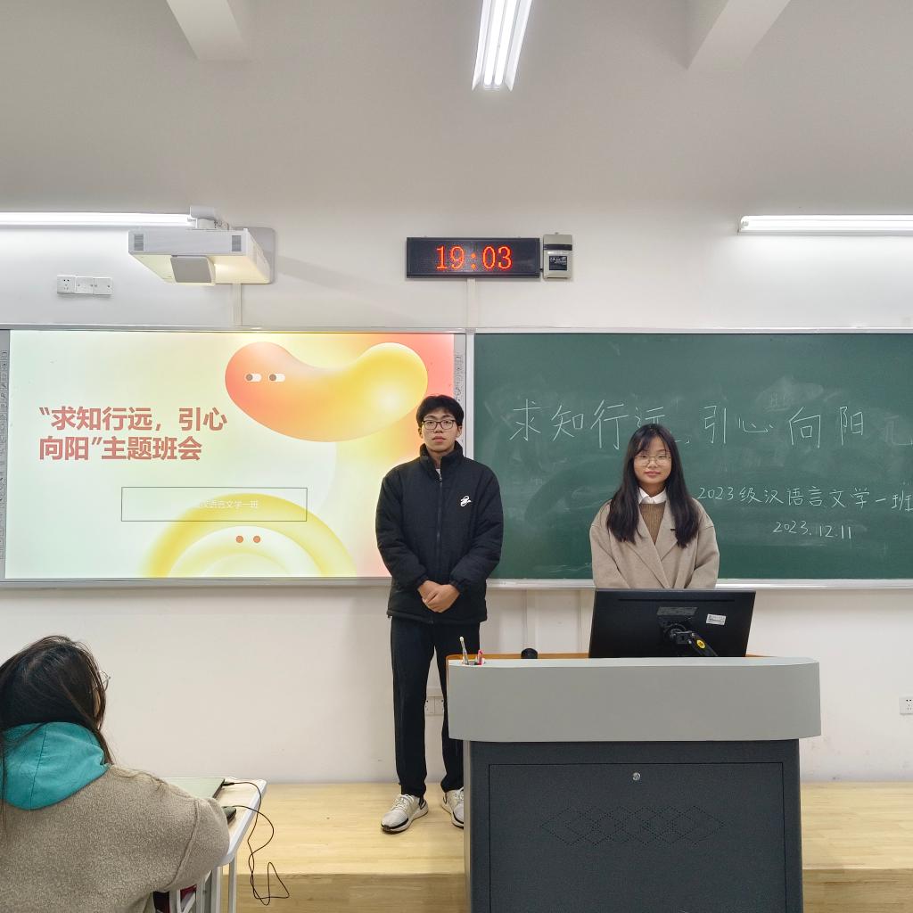 为缓解同学们考前的焦虑情绪,帮助同学们树立自信,以良好的心态面对考试,取得优异成绩。12月11日—年12月17日,我院团总支心理健康教育工作部兼学生权益维护部组织2023级汉文班、汉教班全体同学在班级早晚自习室开展“求知行远,引心向阳”和“勇毅笃行,扬帆远航”主题班会。班会由各班心理委员组织。