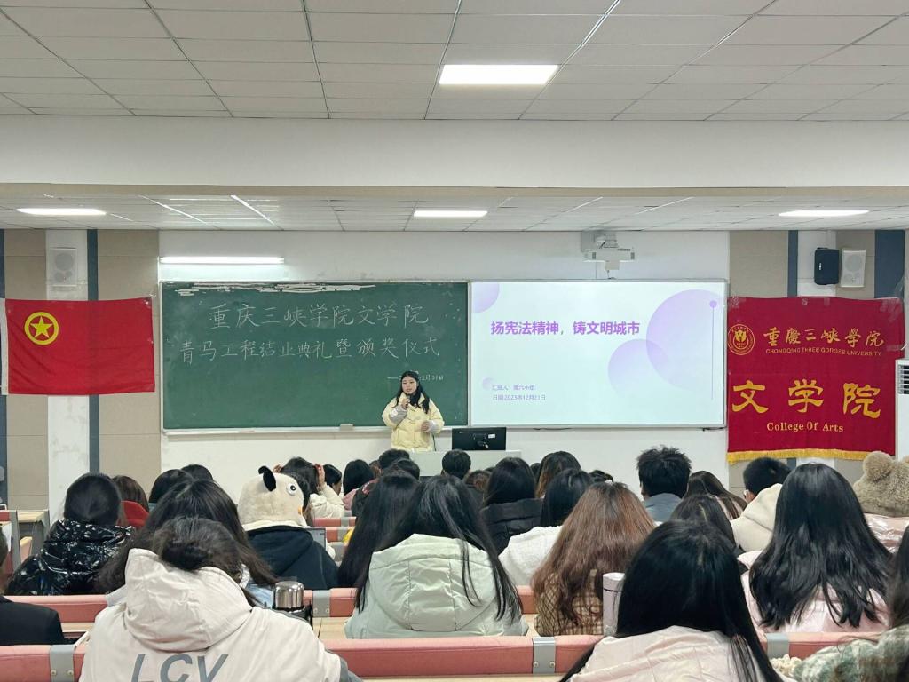 为鼓励青马学员在未来的学习和实践中更加努力,不断提升自我,特对第七期“青马工程”中表现突出的学员进行表彰。12月21日下午,我院在博学楼1栋101室成功举办第七期“青马工程”结业典礼暨颁奖仪式。学工办主任兼团总支书记张悦、2023级辅导员陈进、主席团全体成员以及第七期“青马工程”学员参加本次典礼。
