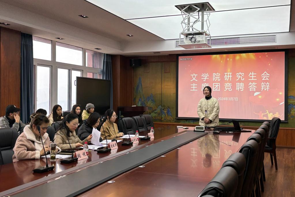 为促进我院研究生工作持续健康发展,强化学生干部队伍建设,我院于3月7日下午在博学楼3栋404室举办了首届研究生会主席团竞聘答辩。党总支书记唐晓萍、副院长向学春、学工办主任兼团总支书记张悦、研究生辅导员周子钦以及部分研究生代表参加了会议。