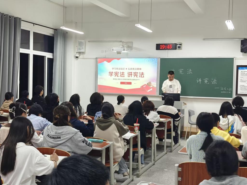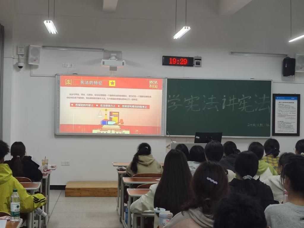 本次活动内容主要围绕宪法知识讲解、宪法知识问答和《宪法伴我们成长》大合唱开展,形式多样,内容丰富。在宪法知识讲解中,同学们认真学习,提升个人的法治素养,强化自身宪法意识;在宪法知识答题中,同学们积极参与“宪法卫士”网络法治知识学习测评,巩固所学内容;全体学生合唱歌曲《宪法伴我们成长》,在优美的歌曲旋律下,领悟宪法精神与内涵。