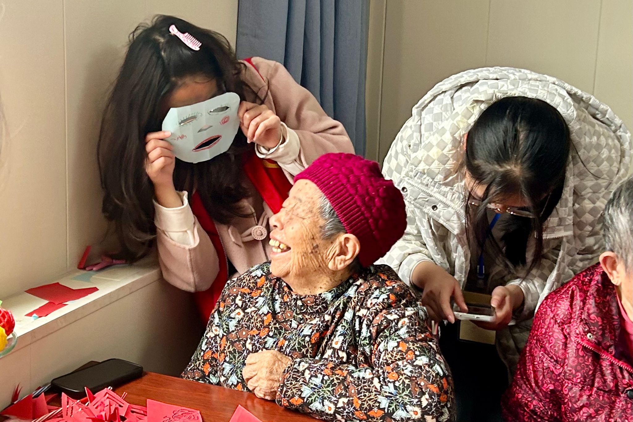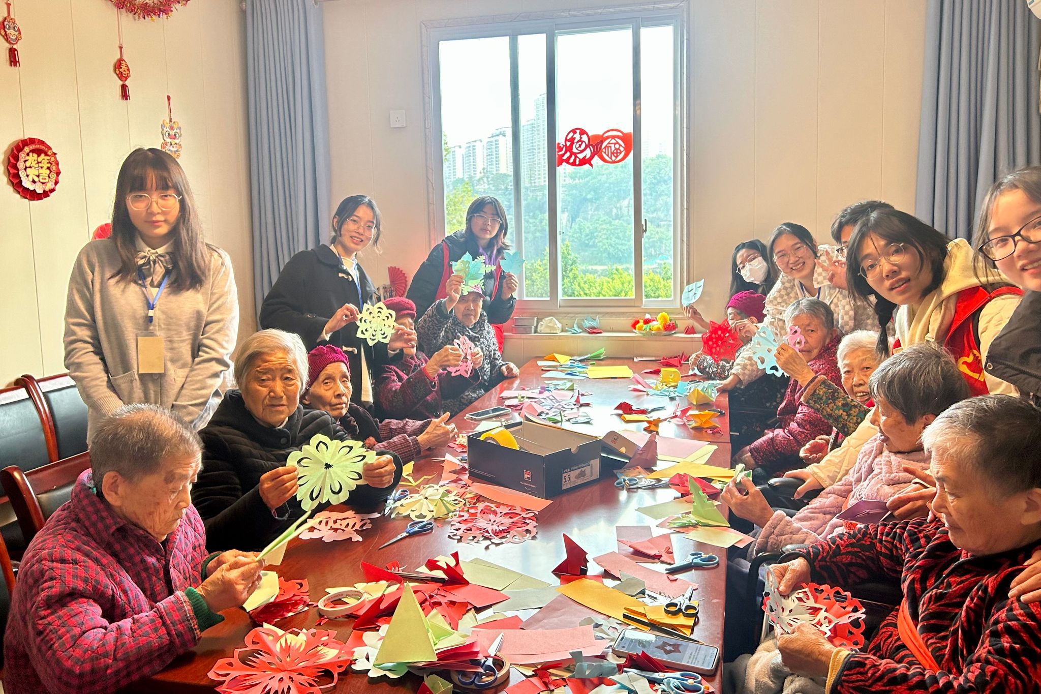 本次志愿活动包含两个部分。一是“巧手慧心,耆老无穷”手工活动。志愿者们组织老人们参与折纸、剪纸、编织等手工制作活动。志愿者们逐步示范,老人们认真跟随操作,完成后的剪纸、纸鹤等成品可作为装饰品点缀房间,为福利院营造出喜庆氛围。二是谈心聊天环节。志愿者与老人们敞开心扉,一起畅聊人生,用新青年视角帮助老人们排忧解难的同时,也领悟到了老一辈的生活经验,拉近了彼此间的距离。活动全程,志愿者们严格遵守学校相关规章制度,以身作则,展现出必赢线路检测学子的良好形象。