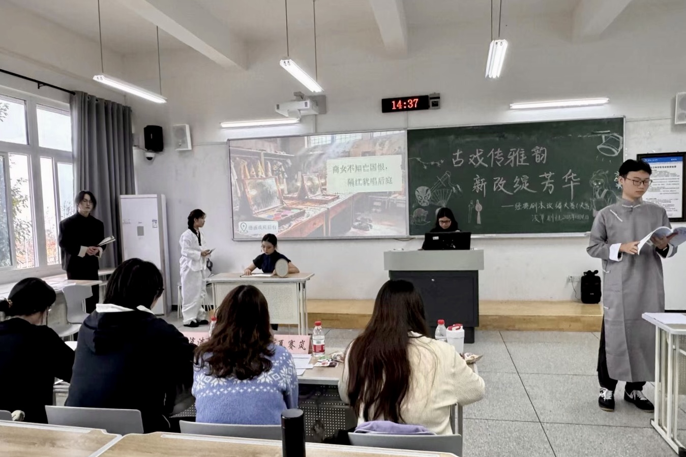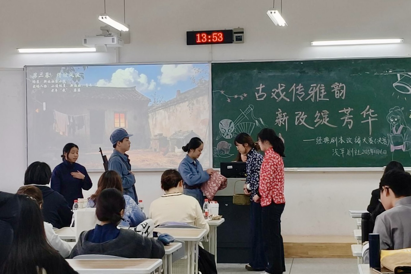 11月16日,必赢线路检测浅草剧社在博学楼1栋103室举办“古戏传雅韵,新改绽芳华”经典剧本改编大赛决赛。文学级2024级辅导员夏赛岚、学生团体联合会主席陈沛洁、秘书处部长张妍煜、勤工外联部部长张婷婷作为嘉宾评委出席本次活动。