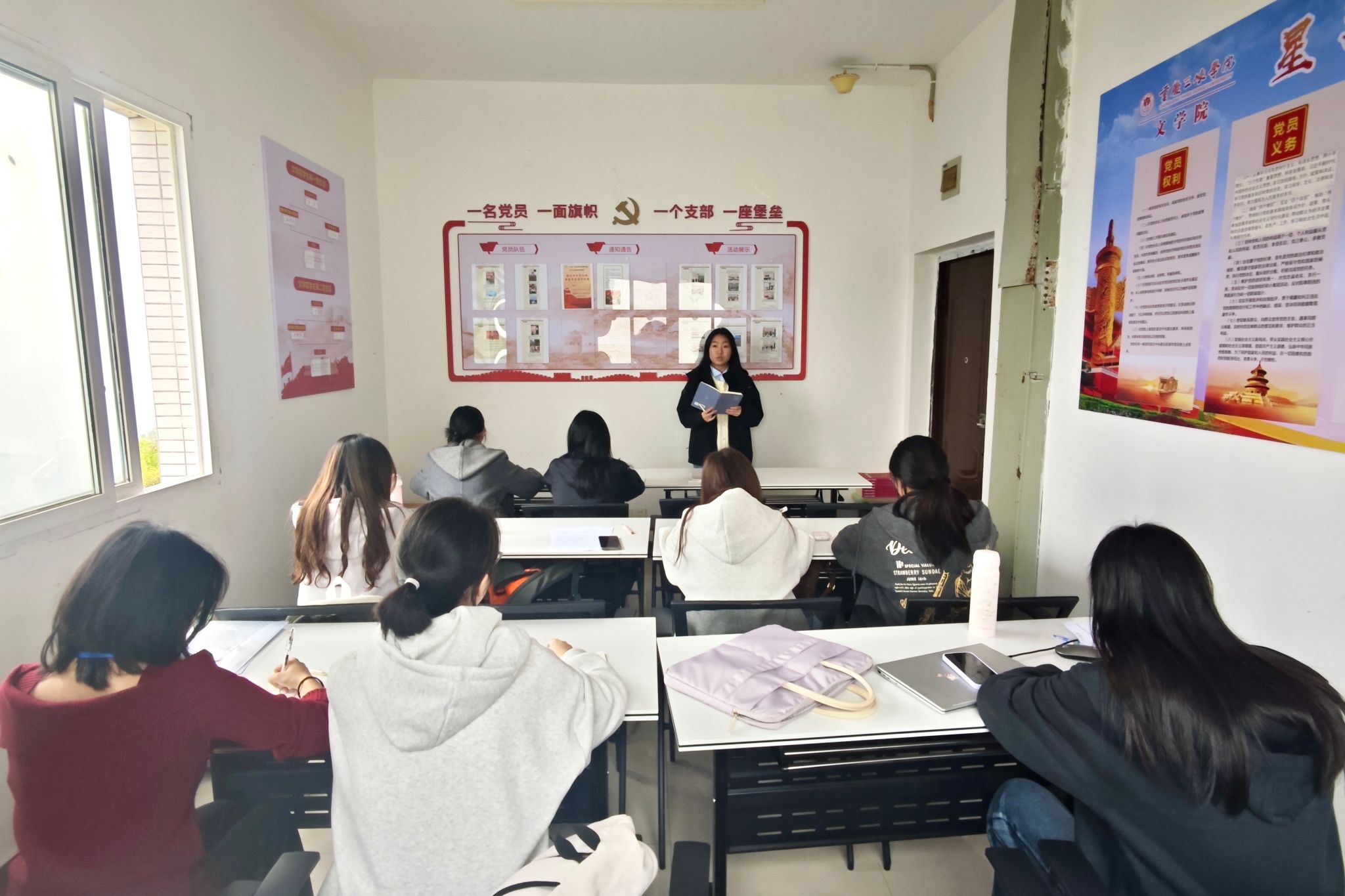 4月2日,必赢线路检测组织部在桂花苑4栋419学生公寓党员工作站——星火驿站成功举办“深学笃行新思想,青春向党砺初心”主题分享会。本次活动旨在引导青年学子深入学习习近平新时代中国特色社会主义思想,筑牢信仰之基、补足精神之钙,在学思践悟中坚定理想信念,在奋发有为中践行初心使命。