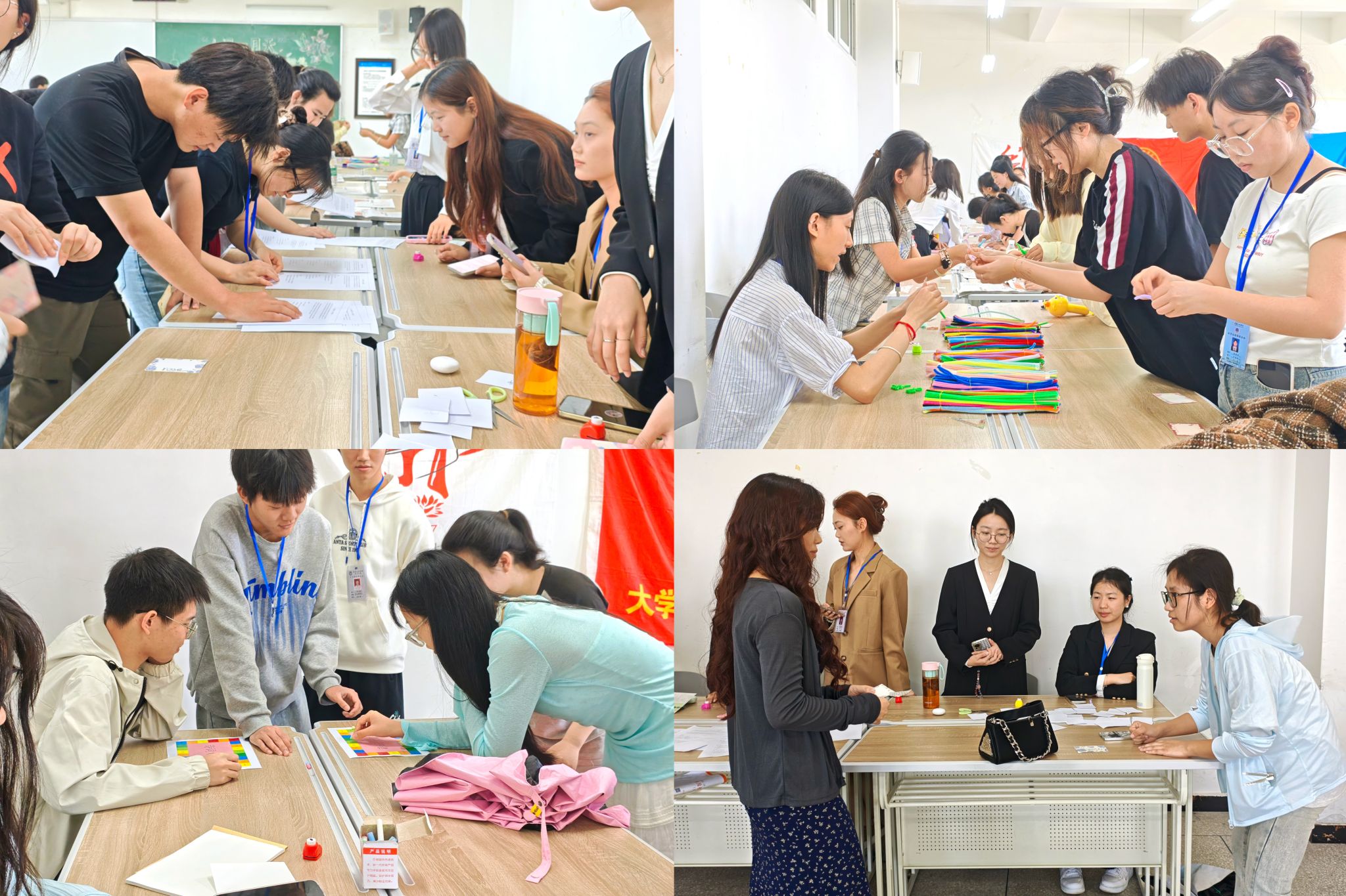 活动伊始,主持人向大家详细介绍了春雅集的流程安排与各环节规则,清晰明了的讲解为后续体验做好了铺垫。随后,各游戏点位同时开放,“版权迷宫”中,同学们两人一组默契配合,在限时猜词间加深了对知识产权概念的理解;“真假原创”展台前,大家仔细比对、凝神甄别,在思辨中体会原创作品的独特价值。手作区的扭扭棒工坊与拼贴诗创作同样备受青睐,参与者们用指尖赋予材料新的生命,一件件充满灵气的作品陆续诞生,现场氛围轻松而热烈。科普区则融合三大社团特色,从诗词、声音到手工设计,多维度传递尊重原创的理念,为整场活动增添了更深层的意蕴。