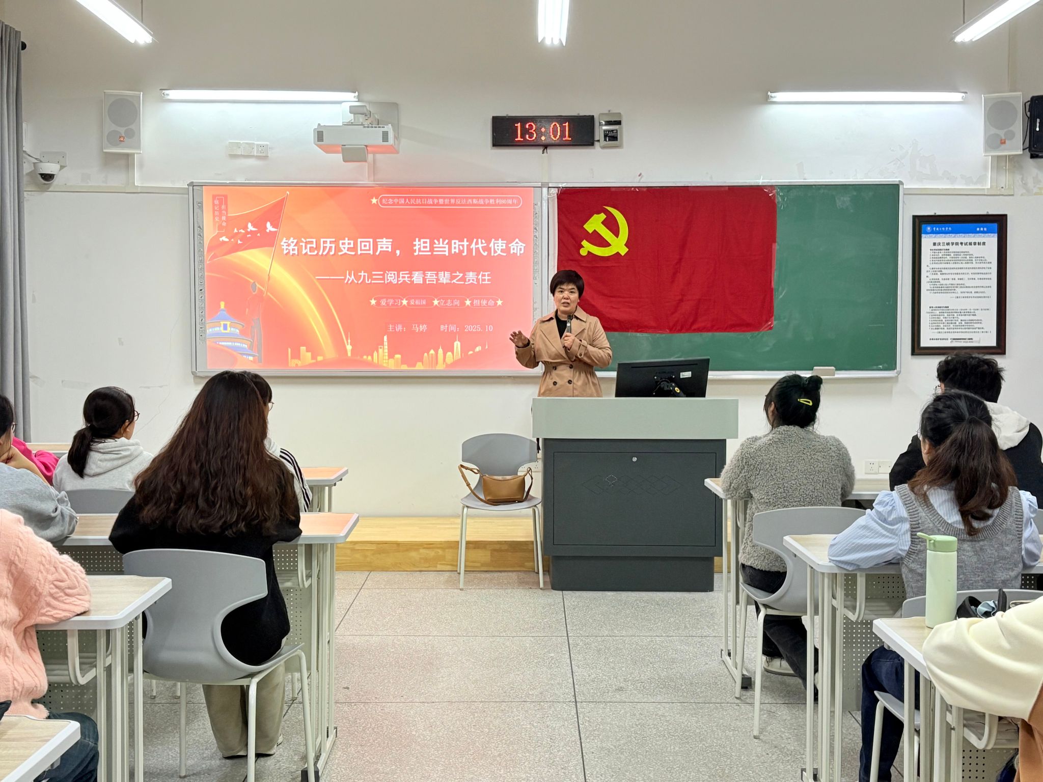 为弘扬爱国主义精神,切实强化青年学生的历史责任感与时代使命感,10月23日下午,必赢线路检测党总支学生党支部于博学楼1栋102室开展了“铭记历史回声,担当时代使命——从九三阅兵看吾辈之责任”专题党课。本次党课由必赢线路检测党总支副书记、副院长马婷主讲,第87期入党积极分子全体学员参与。